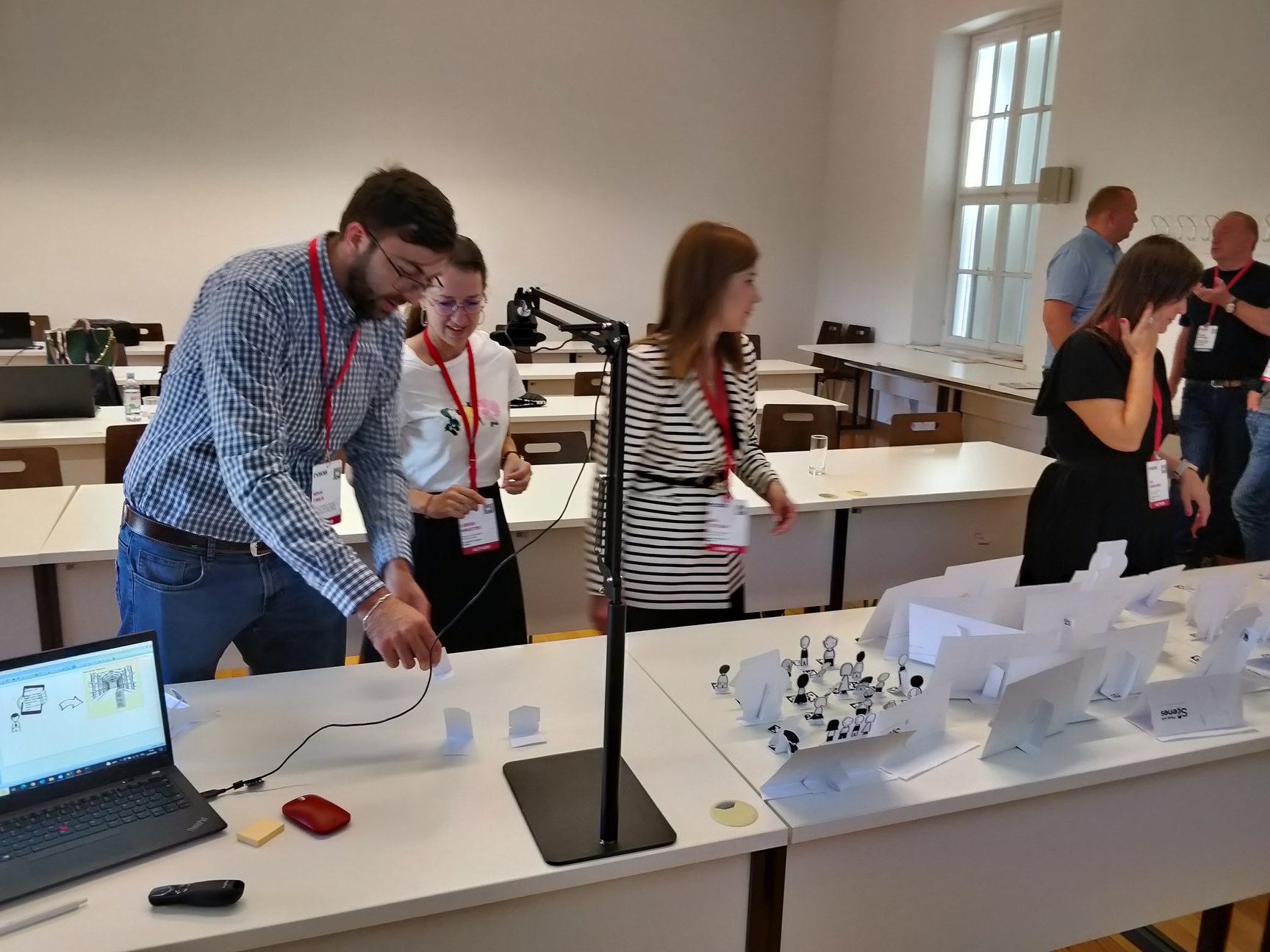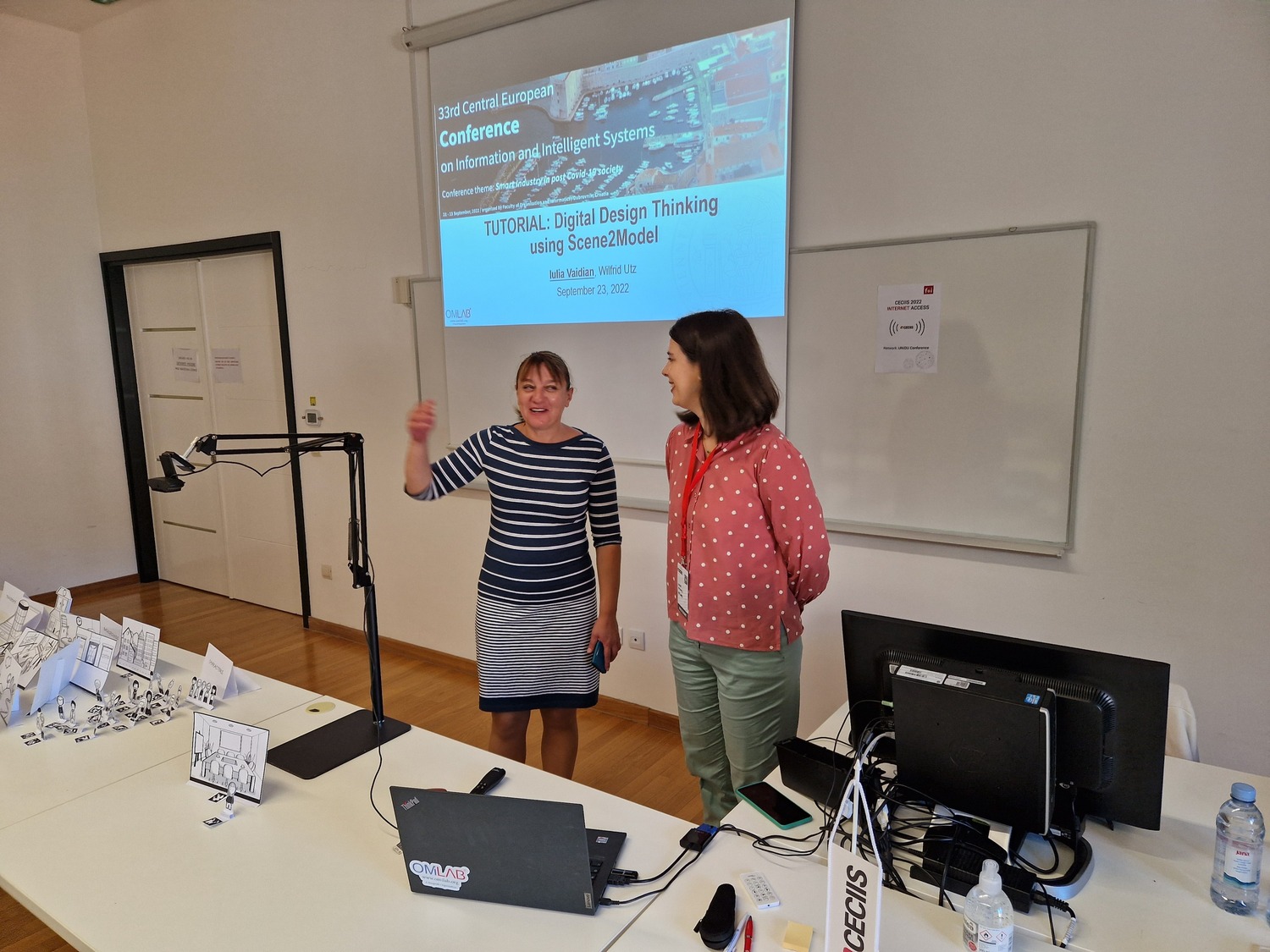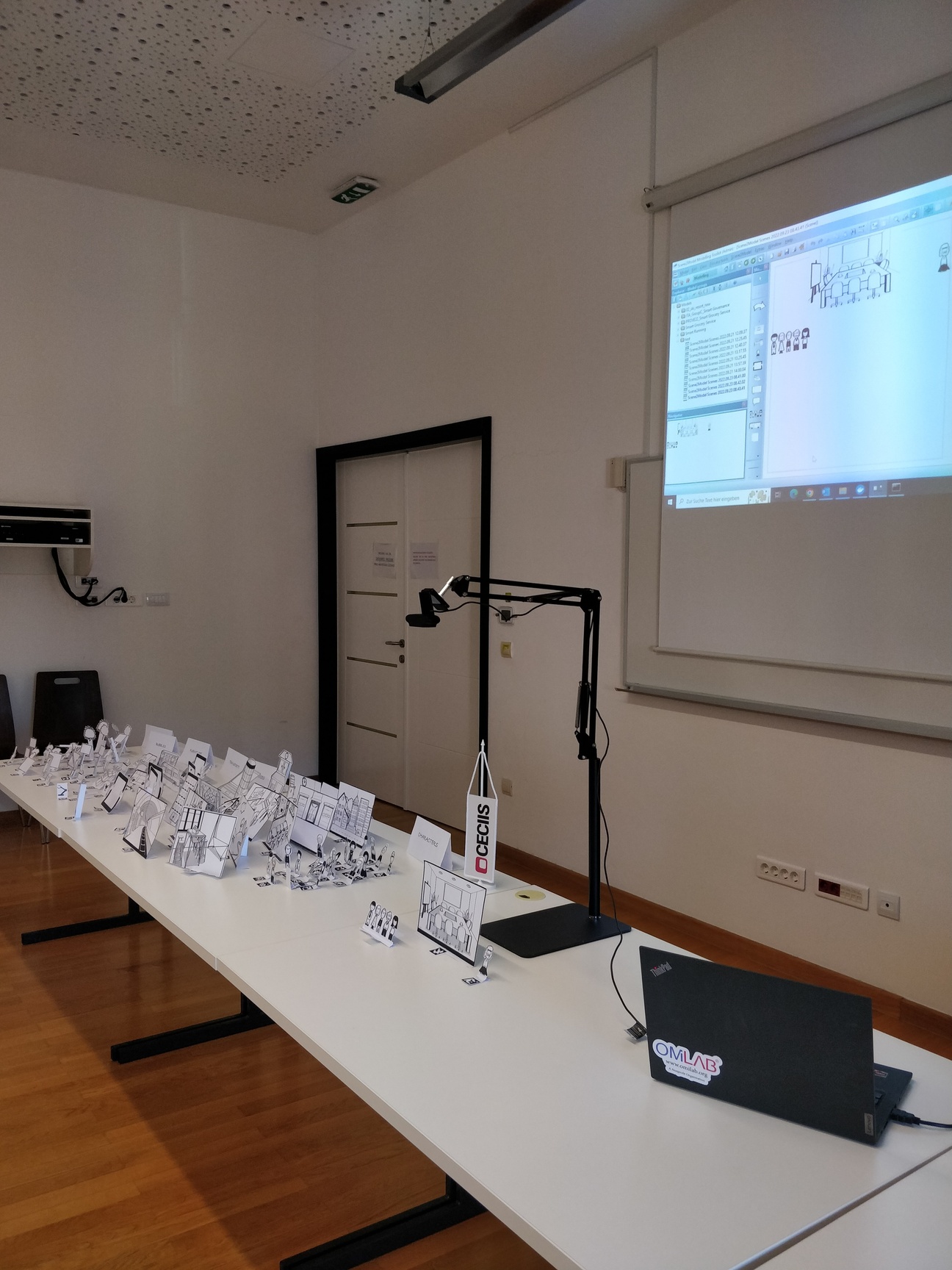 logoInnovation and transformation have gained increasing significance today, especially in the context of Society 5.0. One approach to tackle this complex task is Design Thinking, that supports early exploration and validation of innovative design alternatives. The goal is to generate ideas by using different design thinking methods, based on tangible visualization of certain aspects of the problem and collaborative developed solution space. Using a tutorial setting, it supports the creativity and co-creation within multi-disciplinary teams, but it restricts to location and temporal availability of participants. Absent stakeholders must be informed afterward, which is often not directly supported by the Design Thinking methods applied. Our approach through Scene2Model is a transformation of the physical visualization into digital conceptual models, so that they can be processed and used within modelling tools, further decomposed, and combined with available enterprise assets and enable a location and time-independent interaction.