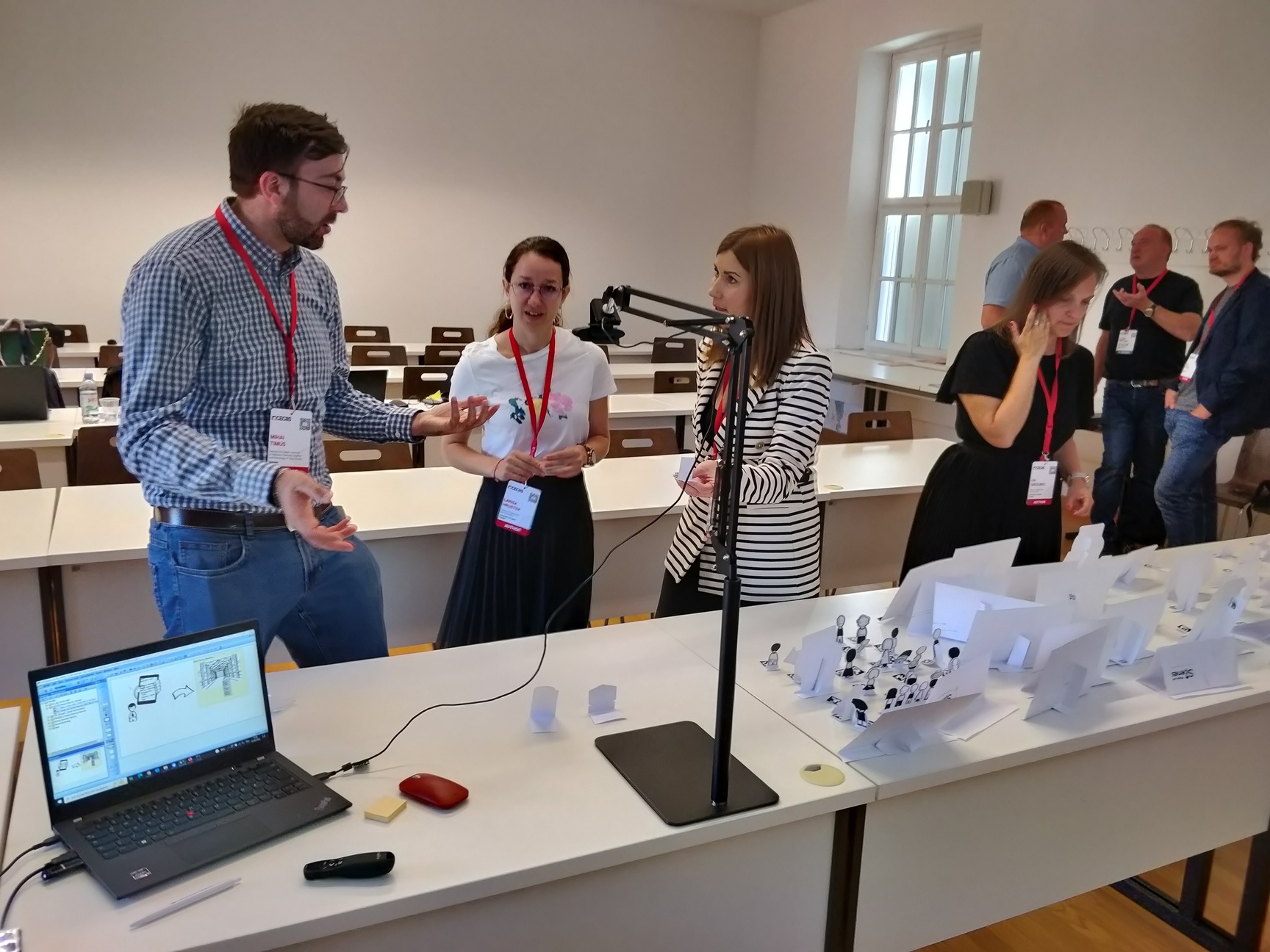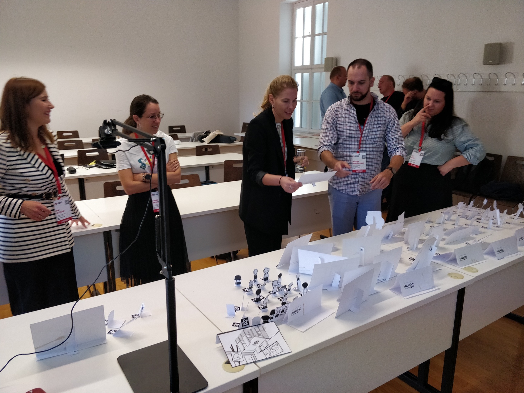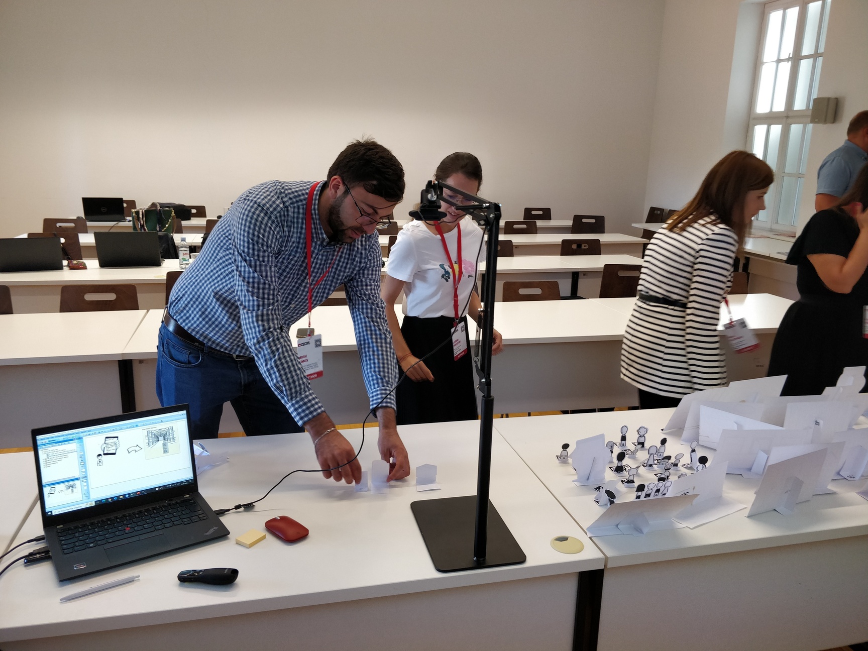 logoInnovation and transformation have gained increasing significance today, especially in the context of Society 5.0. One approach to tackle this complex task is Design Thinking, that supports early exploration and validation of innovative design alternatives. The goal is to generate ideas by using different design thinking methods, based on tangible visualization of certain aspects of the problem and collaborative developed solution space. Using a tutorial setting, it supports the creativity and co-creation within multi-disciplinary teams, but it restricts to location and temporal availability of participants. Absent stakeholders must be informed afterward, which is often not directly supported by the Design Thinking methods applied. Our approach through Scene2Model is a transformation of the physical visualization into digital conceptual models, so that they can be processed and used within modelling tools, further decomposed, and combined with available enterprise assets and enable a location and time-independent interaction.