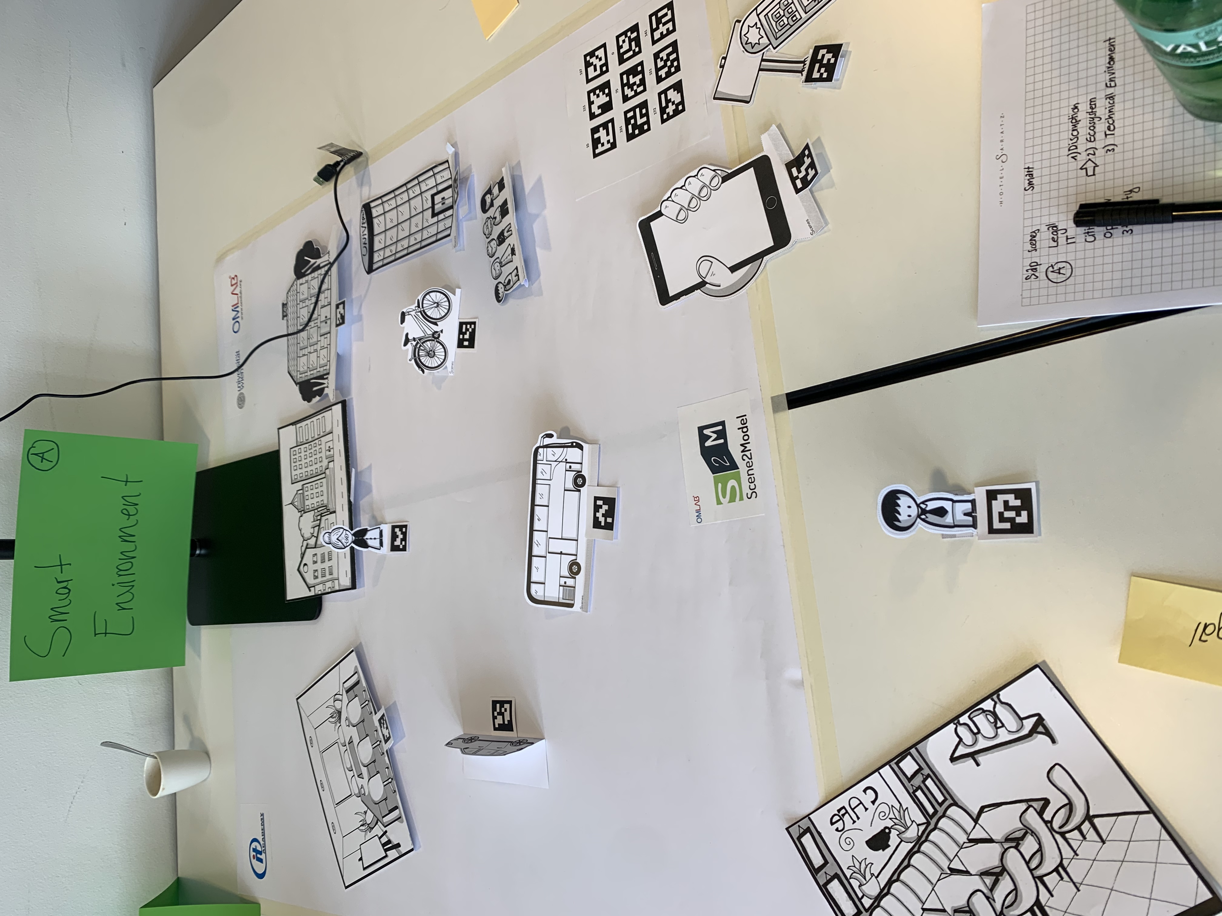 The tutorial will introduce participants to storyboards as a selected Design Thinking method. Haptic paper figures (SAP ScenesTM) are used to depict scenes and build storyboards in the context of Smart Mobility domain. Participants will observe the end-toend process of a tool-supported transformation from haptic paper objects into digitized models. The Scene2Model tool, not only enables this transformation, but it also semantically enriches the models and allows their automated composition into storyboards.