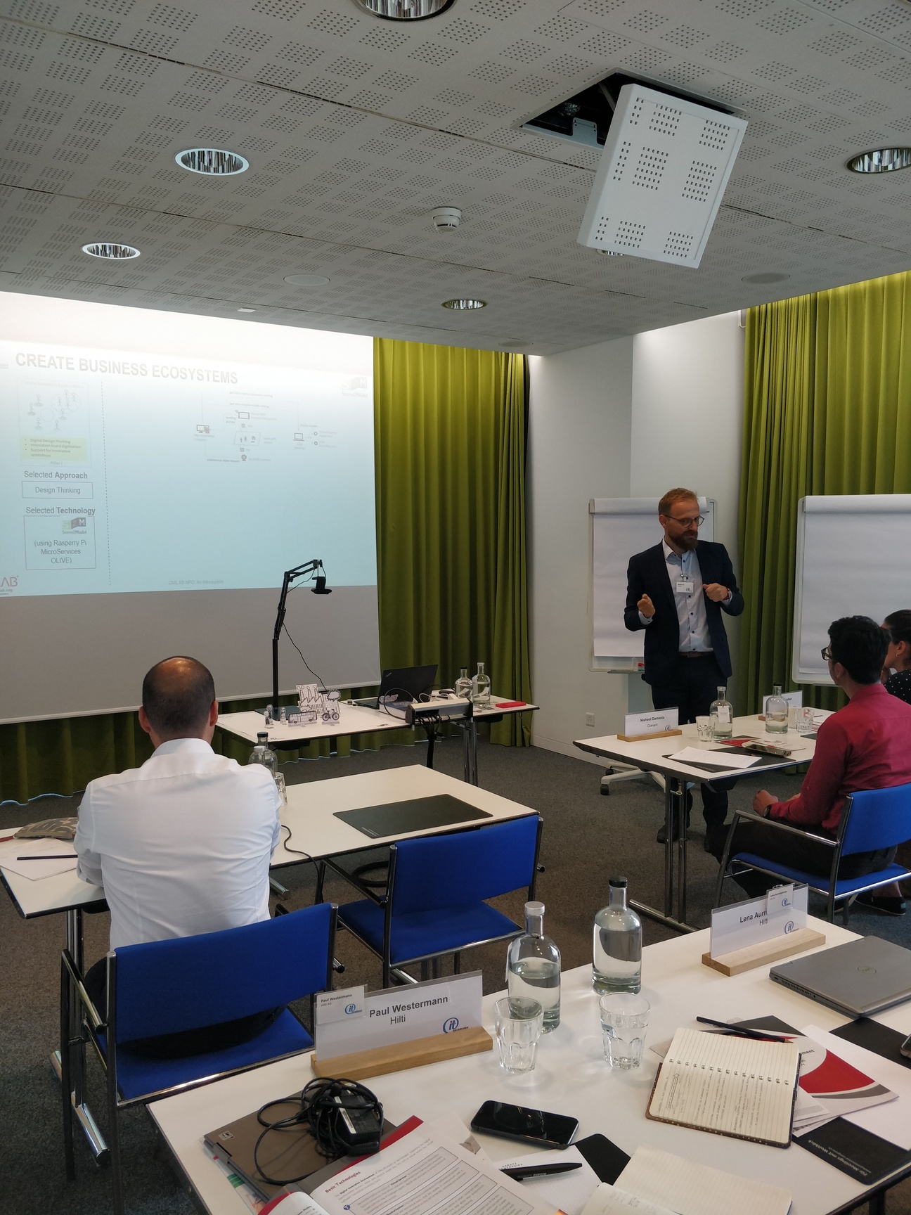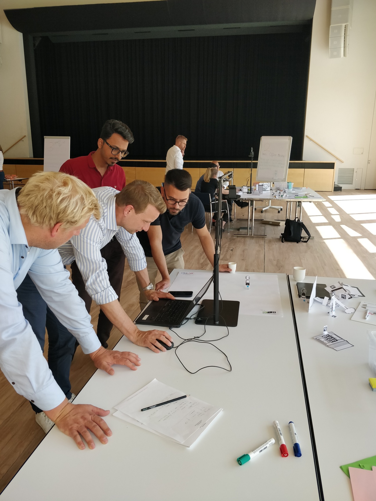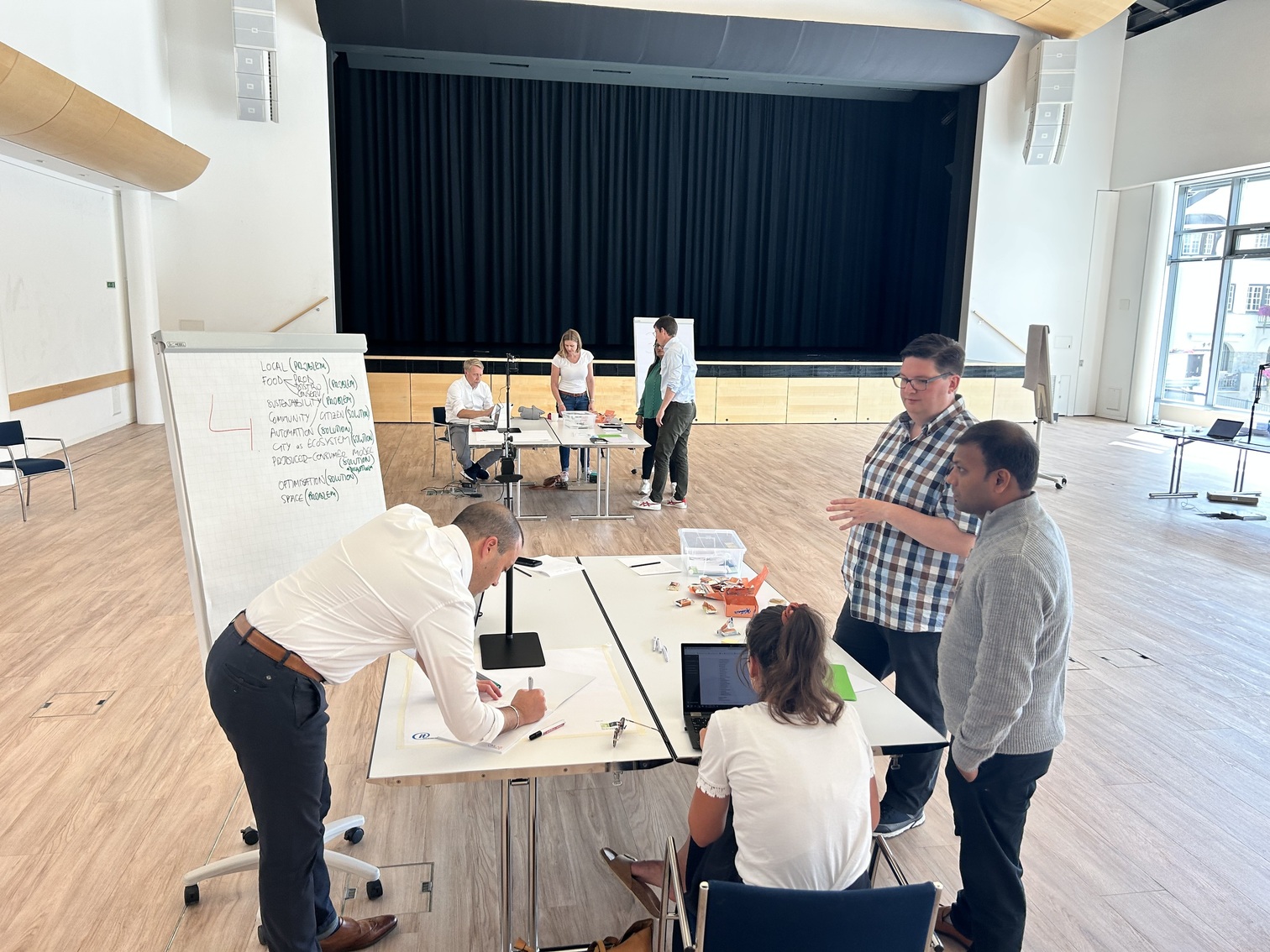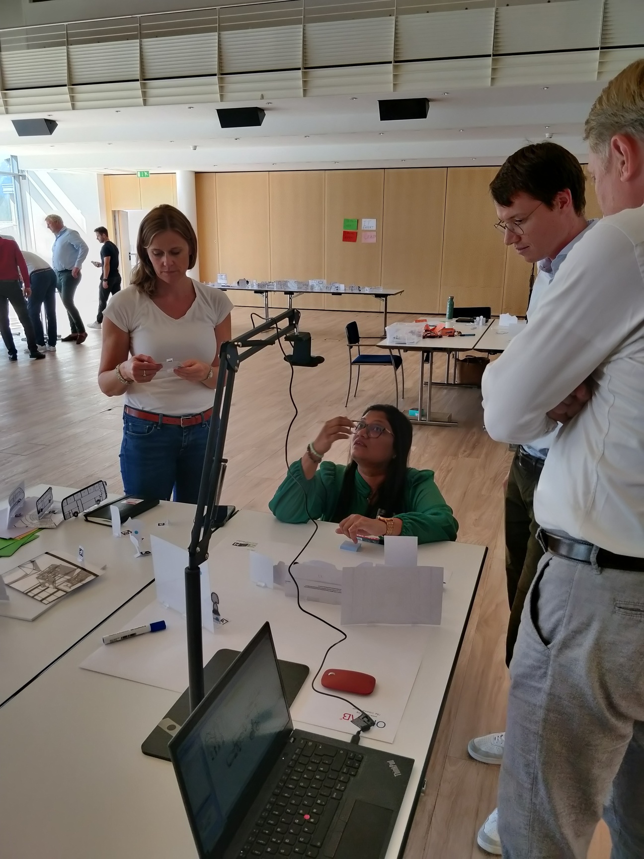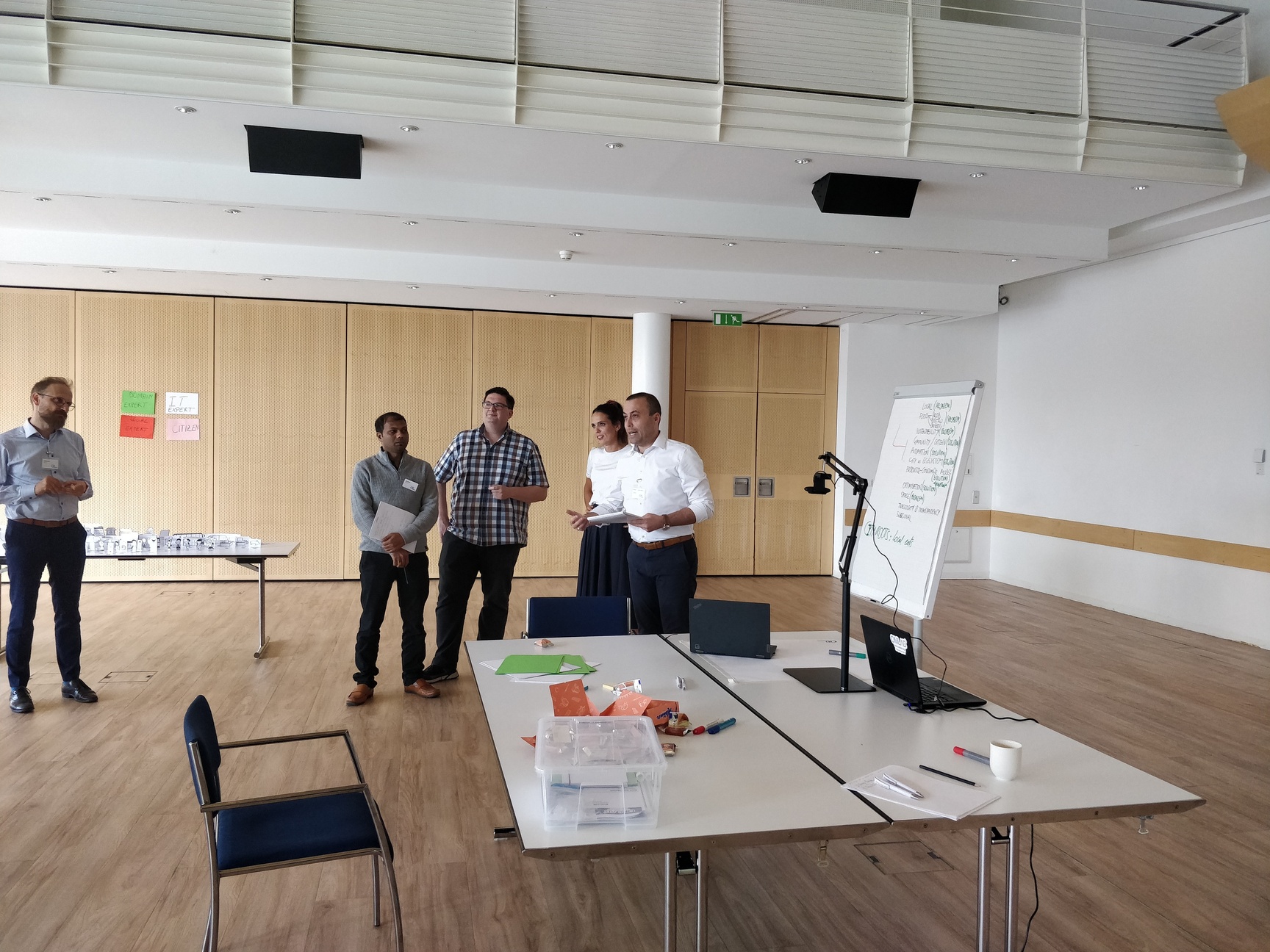 The workshop will introduce participants to storyboards as a selected Design Thinking method. Haptic paper figures (SAP ScenesTM) are used to depict scenes and build storyboards in the context of Smart City domain. Participants will observe the end-to-end process of a tool-supported transformation from haptic paper objects into digitized models. The Scene2Model tool supports design thinking by allowing the creation and processing of digital models of innovative ideas. Additional added value comes from one of the core capabilities which supports the usage of physical co-creation in workshops and deriving enriched digital models automatically from such workshops.